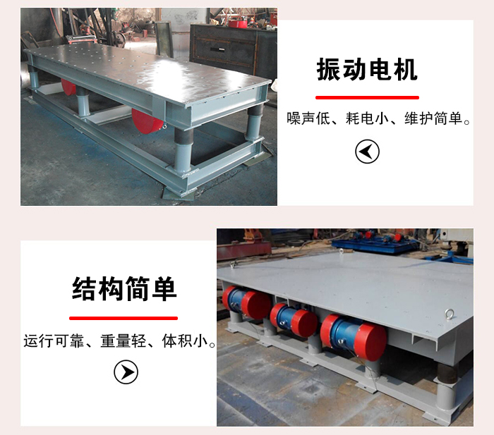 振實臺在使用過程中,可以通過調節振動電機激振力大小、來使平臺上物料實現理想的形式。振動電機為激振源,噪聲低、耗電小、維護簡單。ZDP振實臺結構簡單。運行可靠、重量輕、體積小、安裝簡便。
